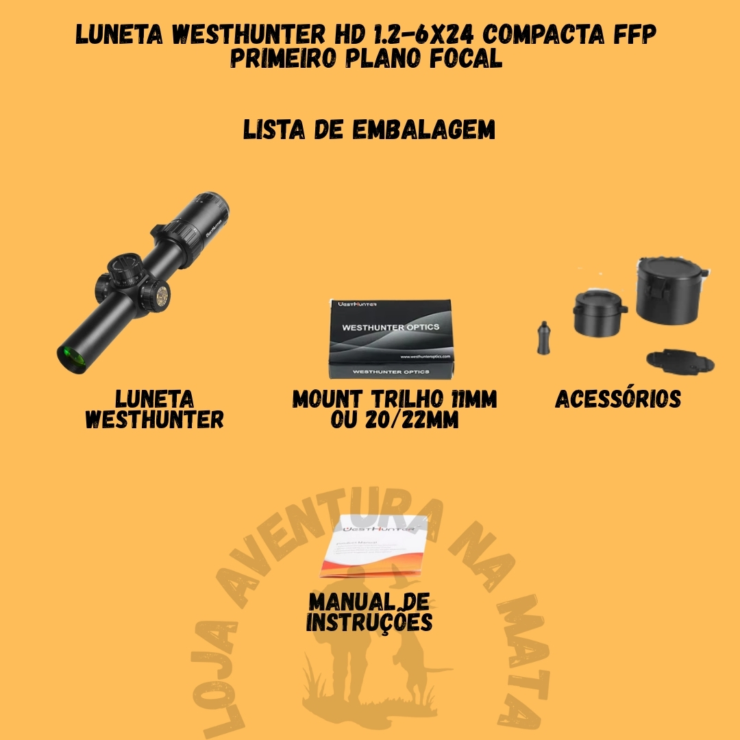 A Luneta WestHunter HD 1.2-6X24 Compacta FFP foi desenvolvida para atiradores exigentes e caçadores que buscam versatilidade, leveza e desempenho avançado. Seu sistema FFP (Primeiro Plano Focal) oferece precisão real em qualquer nível de zoom, adaptando-se perfeitamente a diferentes distâncias.