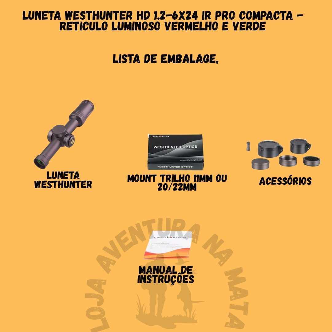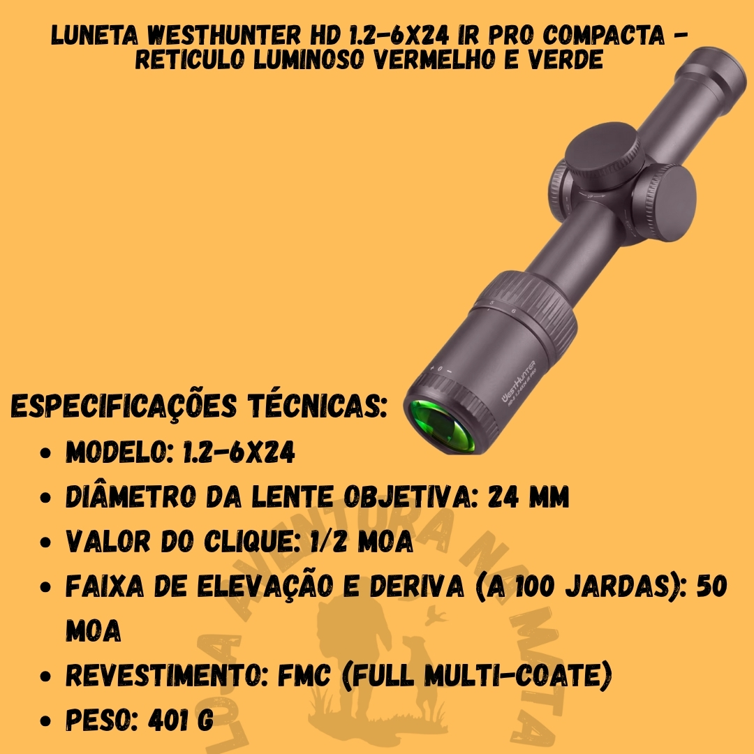 💥 Aprimore sua experiência de tiro. Adquira já a sua Luneta WestHunter HD 1.2-6X24 IR Compacta!
