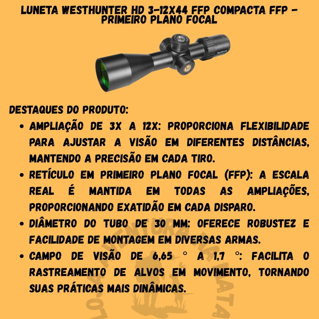 🎯 Luneta WestHunter HD 3-12X44 FFP Compacta - A Escolha Perfeita para Precisão e Confiabilidade!