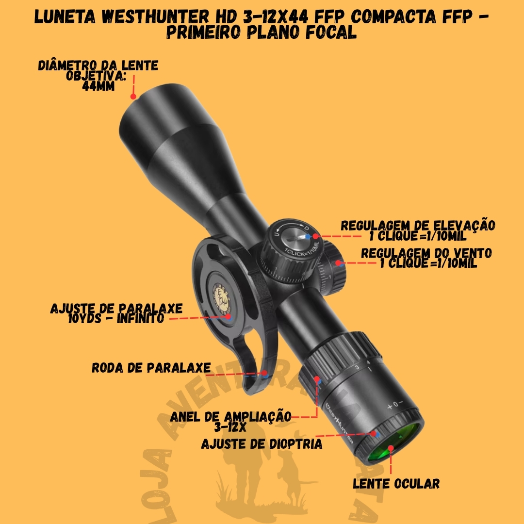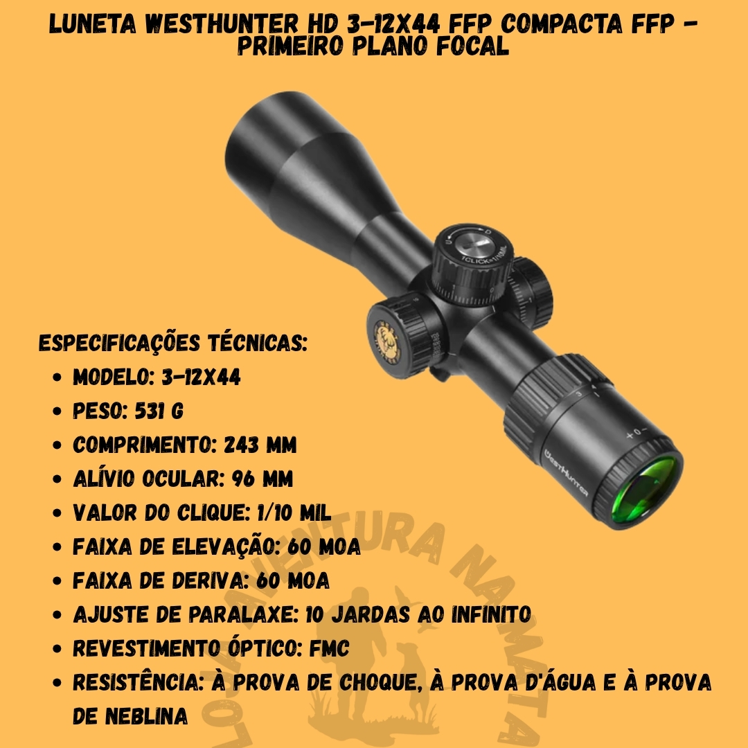 WestHunter HD 3-12X44 FFP Compacta! Faça já seu pedido!