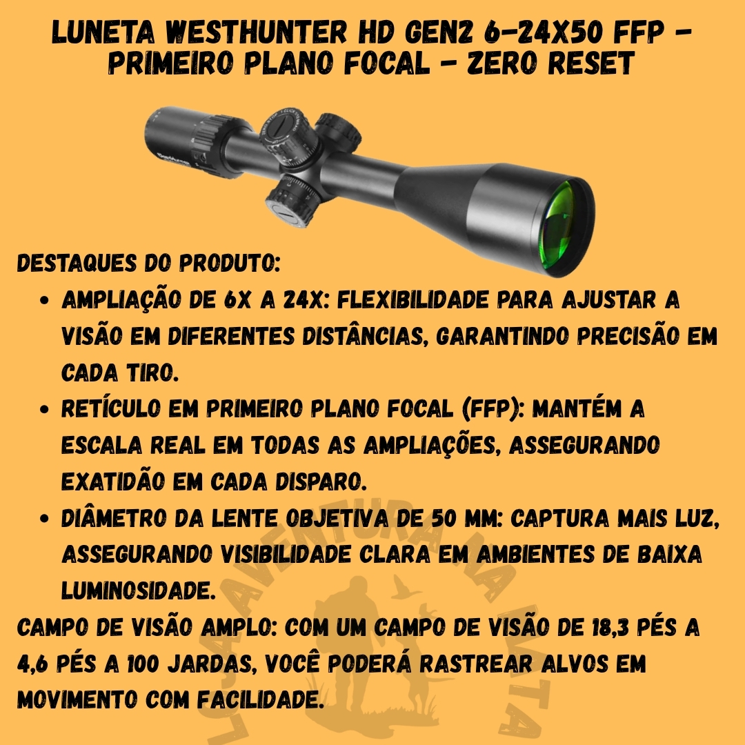 🎯 Luneta WestHunter HD Gen2 6-24x50 FFP - Primeiro Plano Focal - Zero Reset: A Escolha Definitiva para Precisão e Performance!