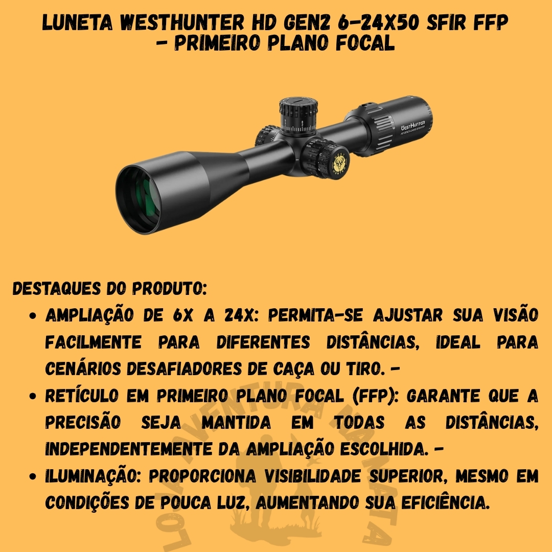 💥 Transforme sua experiência de tiro com a Luneta WESTHUNTER HD GEN2 6-24X50 SFIR FFP! Faça já seu pedido!