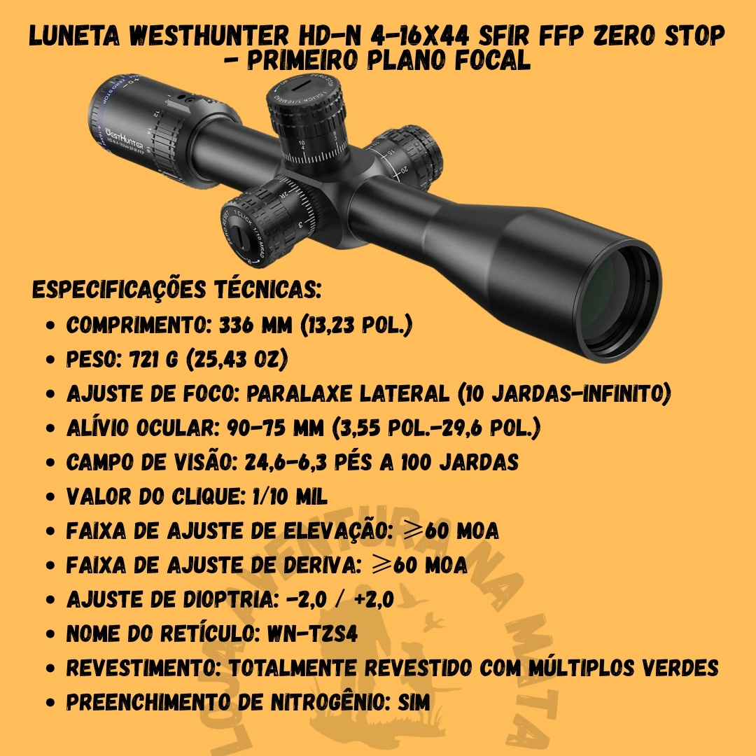 🎯 Luneta WestHunter HD-N 4-16X44 SFIR FFP - Primeiro Plano Focal: A Escolha Perfeita para Precisão e Versatilidade!
