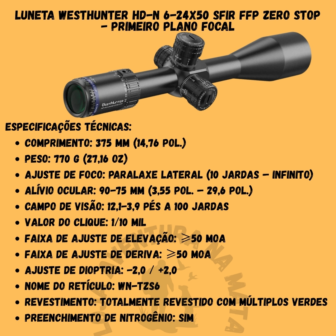 🎯 Luneta WestHunter HD-N 6-24X50 SFIR FFP - Primeiro Plano Focal - Zero Stop: O Equipamento Definitivo para Atiradores Exigentes!
