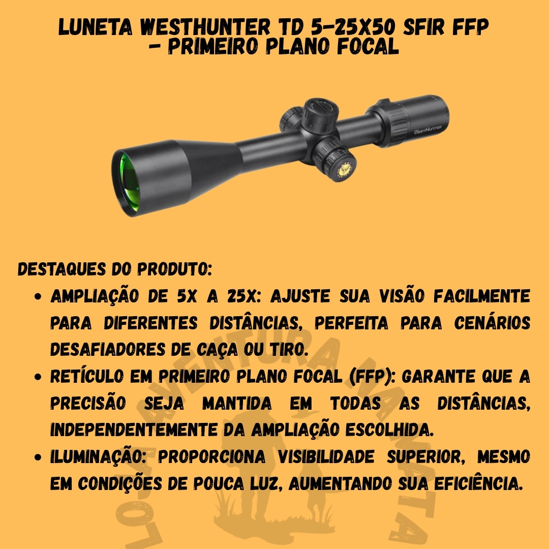 💥 Transforme sua experiência de tiro com a Luneta WESTHUNTER TD 5-25X50 SFIR FFP! Faça já seu pedido!