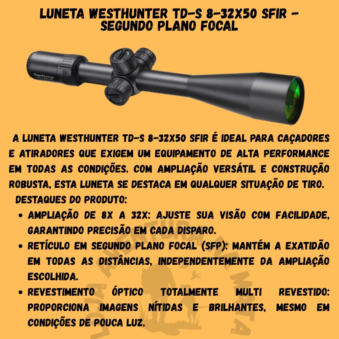 💥 Eleve sua experiência de tiro com a Luneta WESTHUNTER TD-S 8-32X50 SFIR! Faça já seu pedido!
