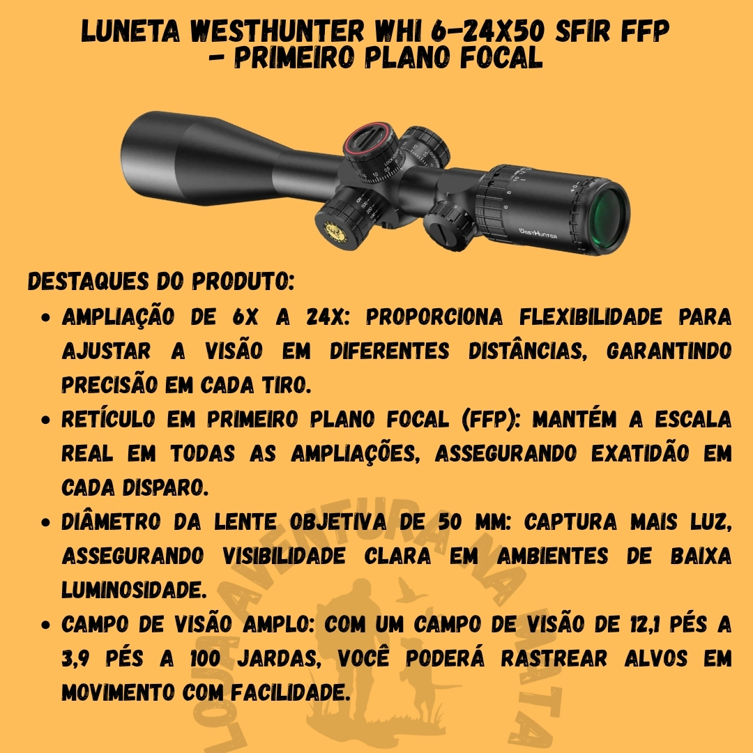 💥 Eleve sua experiência de tiro com a Luneta WestHunter WHI 6-24X50 SFIR FFP! Faça já seu pedido!