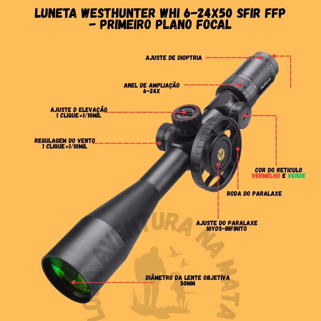 🎯 Luneta WestHunter WHI 6-24X50 SFIR FFP - Primeiro Plano Focal: A Escolha Perfeita para Precisão e Performance!
