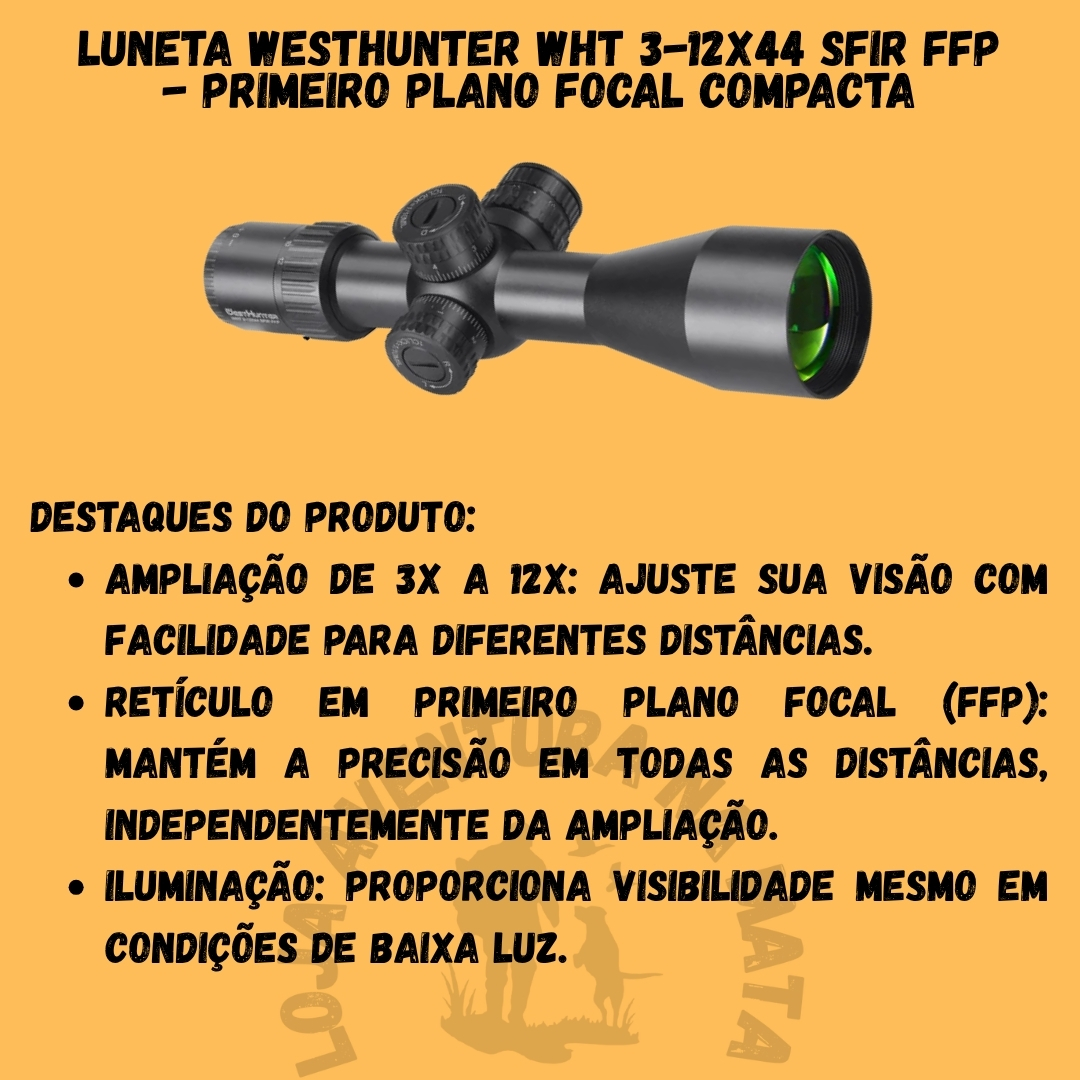 💥 Transforme sua experiência de tiro com a Luneta WESTHUNTER WHT 3-12X44 SFIR! Faça já seu pedido!