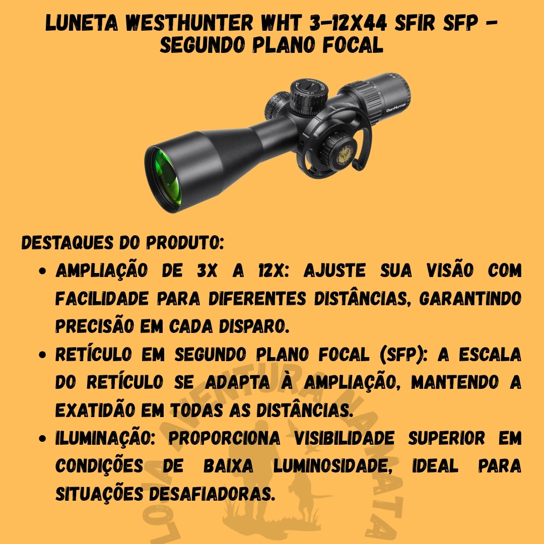 💥 Eleve sua experiência de tiro com a Luneta WestHunter WHT 3-12X44 SFIR SFP! Faça já seu pedido!