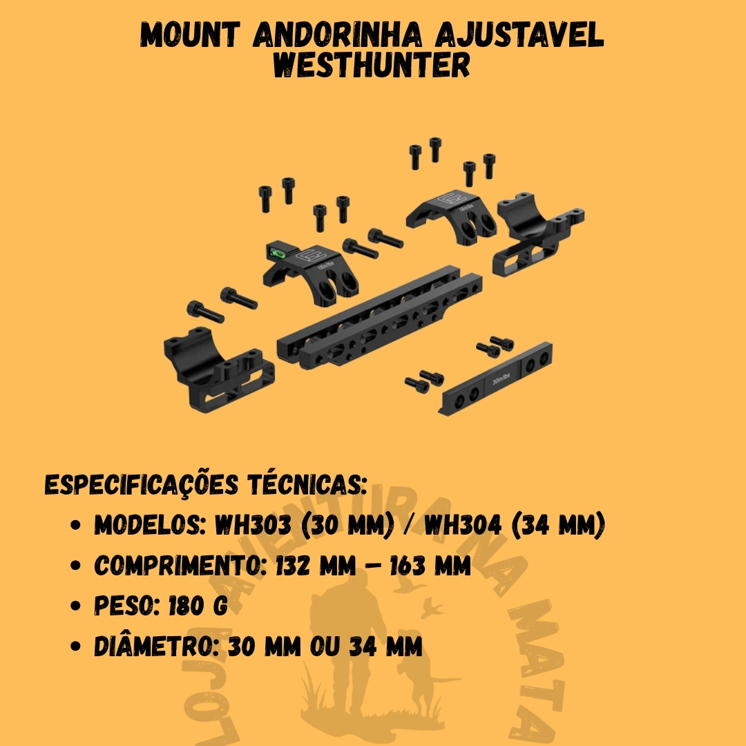 ✔ Compatibilidade – Disponível nos modelos WH303 (30 mm) e WH304 (34 mm), adequado para diferentes configurações de lunetas.