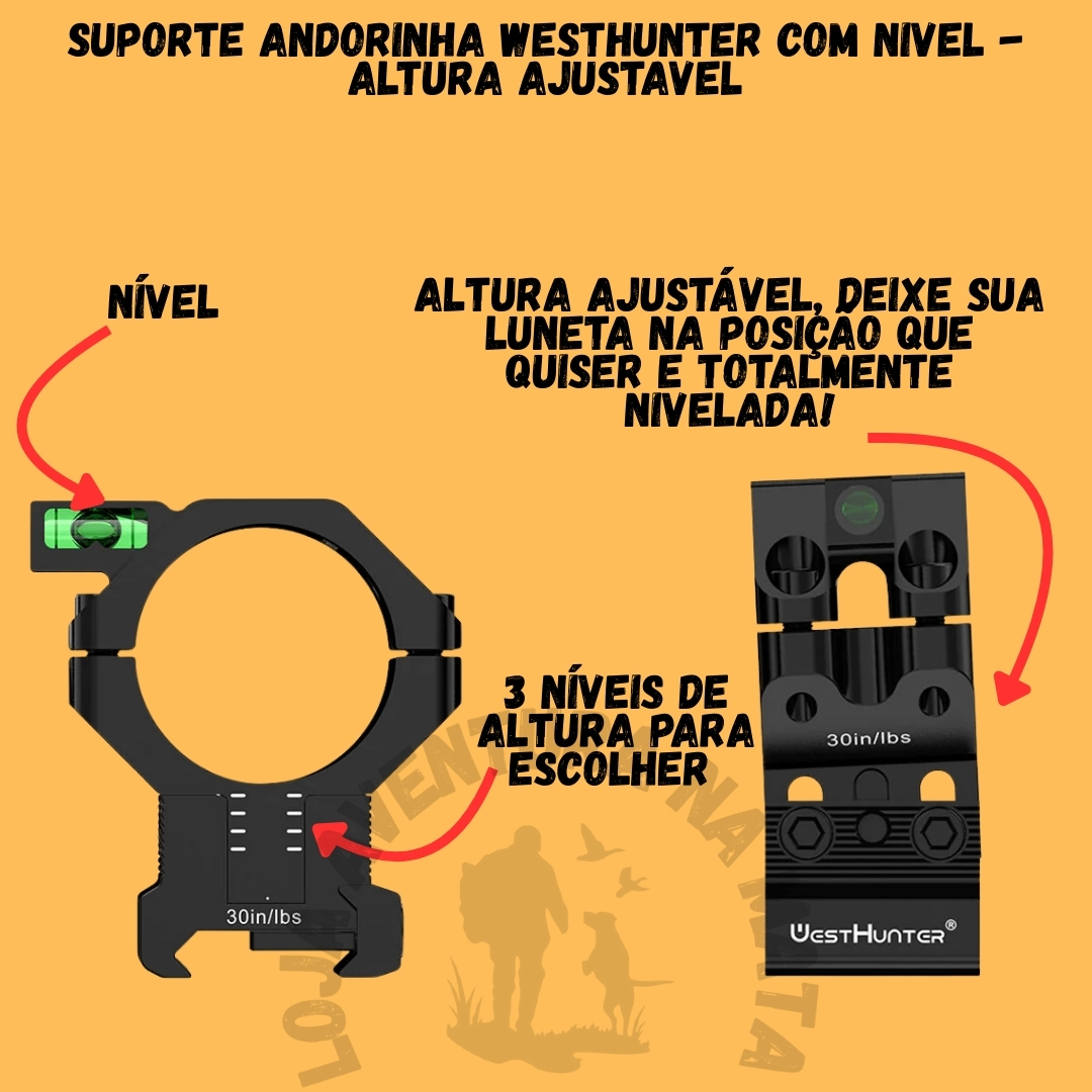 Aprimore sua precisão com o Suporte Andorinha WestHunter com Nível – Altura Ajustável!