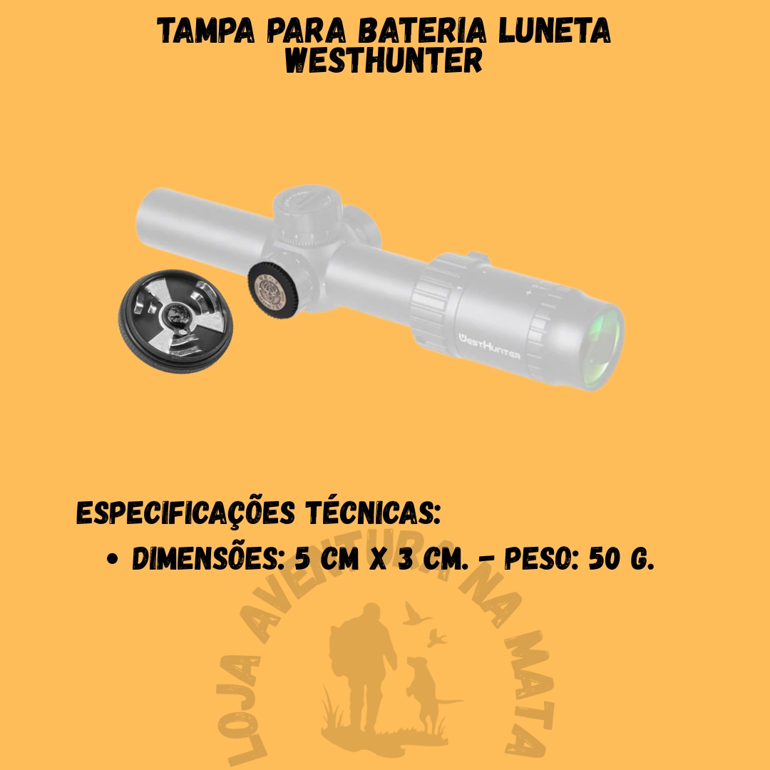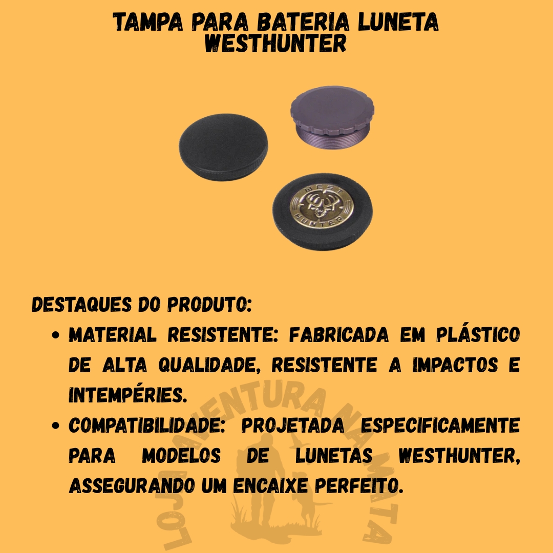 🎯 TAMPA PARA BATERIA LUNETA WESTHUNTER: A tampa ideal para proteger a bateria da sua luneta Westhunter, garantindo durabilidade e desempenho em campo.