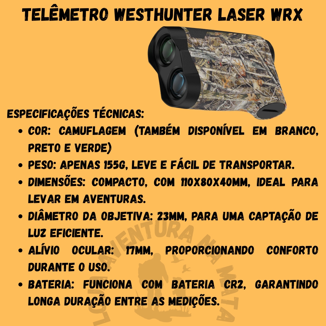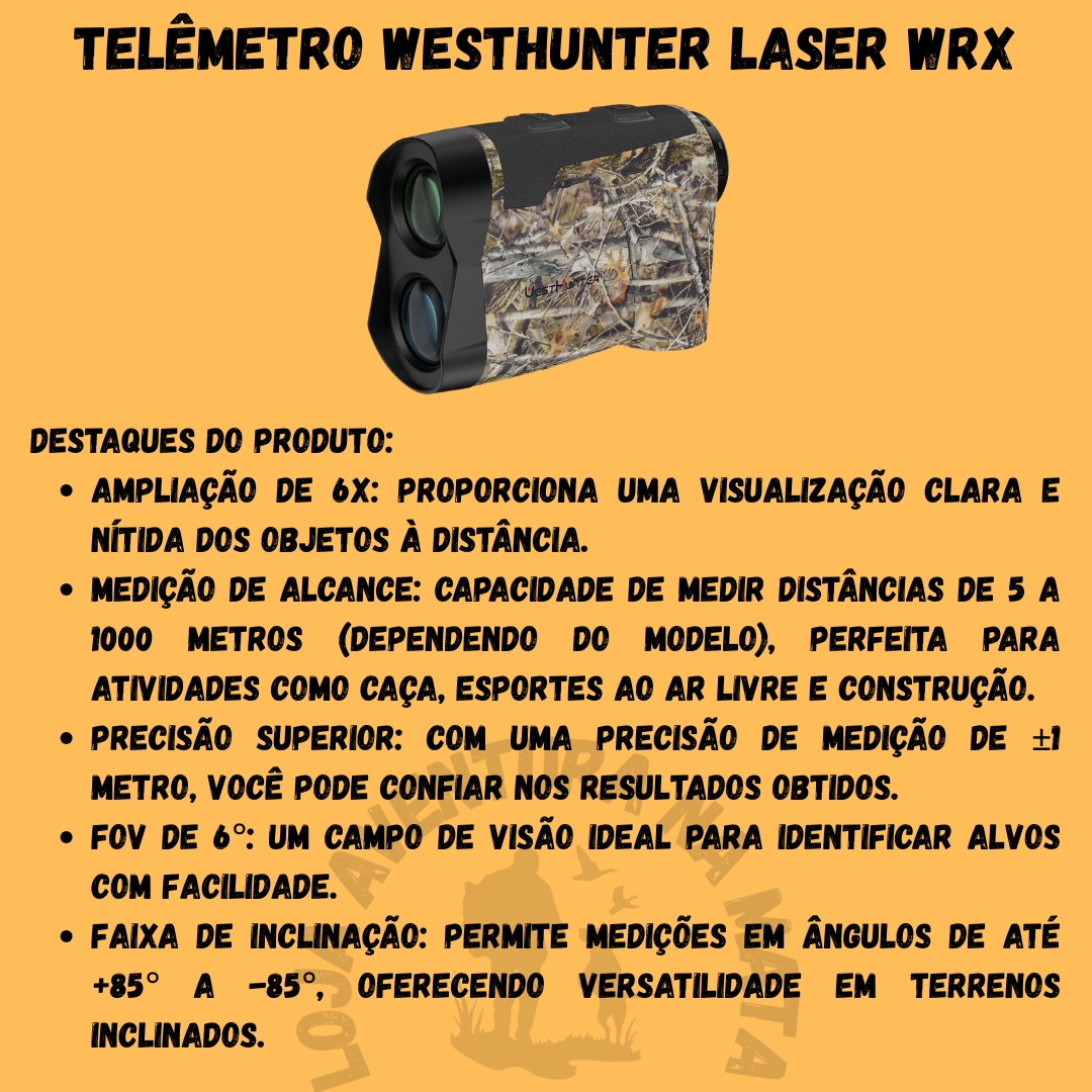 O Telêmetro a Laser WRX Camuflado é perfeito para quem busca um produto que una funcionalidade, precisão e um design atraente. Ideal para caçadores, praticantes de esportes e profissionais da construção civil, esse telêmetro se tornará seu aliado em todas as medições.