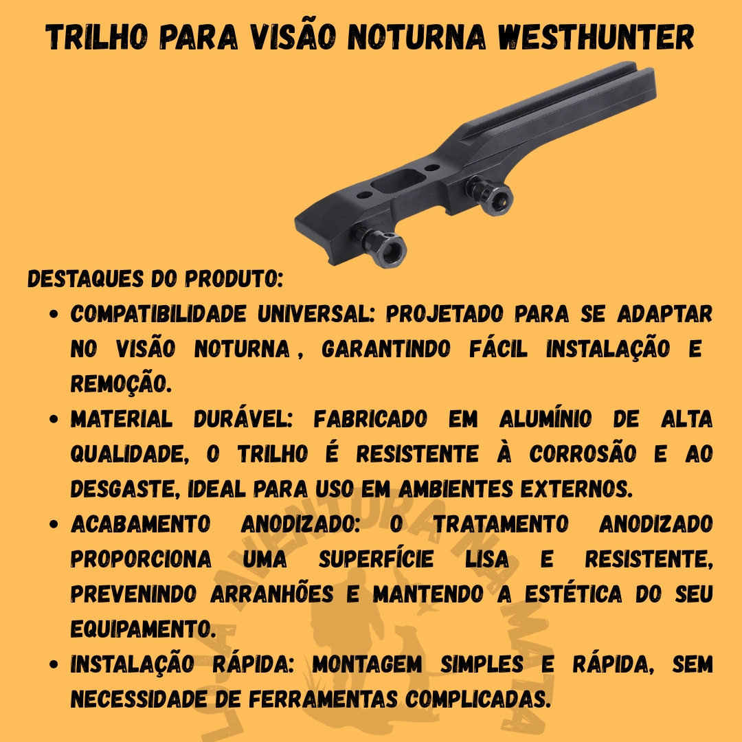 O Trilho para Visão Noturna Westhunter é ideal para atiradores, caçadores e entusiastas que valorizam qualidade e precisão. Garanta o seu e leve sua experiência de tiro ao próximo nível!